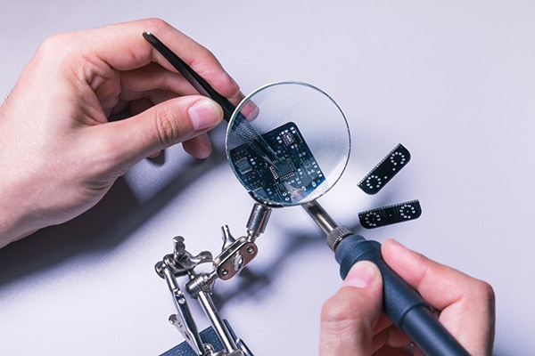 Teknight, da oltre 40 anni punto di riferimento a Modena e Bologna nella produzione di apparecchiature elettroniche, offre servizi di montaggio SMD e PTH di componenti elettronici su schede e PCB, personalizzati in base alle specifiche esigenze di utilizzo. In durante tutto il processo di montaggio, utilizziamo macchinari e strumentazioni all’avanguardia, gestiti da tecnici altamente qualificati con lunga esperienza nel settore.